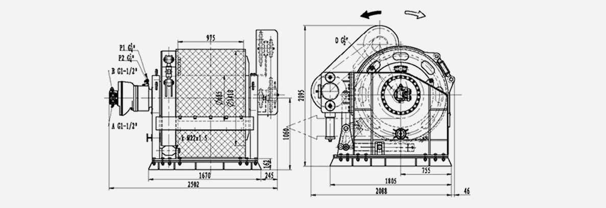 l*J---C সিরিজের মুরিং উইঞ্চ হল আমাদের কোম্পানির পেটেন্ট পণ্য। তারা ওভারলোড সুরক্ষা, হাইড্রোলিক মোটর (ব্রেক সহ ইলেক্ট্রোমোটর), প্ল্যানেটারি গিয়ারবক্স, বেল্ট ব্রেক, দাঁতের ক্লাচ, ড্রাম ক্যাপস্ট্যান হেড, ফ্রেম ইত্যাদির ফাংশন সহ ভালভ ব্লক নিয়ে গঠিত। ভালভ ব্লকের সাথে মানানসই হওয়ার কারণে, শুধুমাত্র হাইড্রোলিক সিস্টেমের ডিজাইনকে সরলীকৃত করেনি কিন্তু ড্রাইভের নির্ভরযোগ্যতাও উন্নত করেছে। উইঞ্চ সিরিজে একটি CT ফাংশন থাকতে পারে যদি একটি ধ্রুবক টেনশন ভালভ bl এর সাথে লাগানো থাকে তবে সিরিজটিরও উচ্চ স্টার্টআপ দক্ষতা এবং কাজের দক্ষতা রয়েছে। উপরন্তু, প্রথাগত মুরিংয়ের সাথে তুলনা করে সিরিজের মোট ট্রান্সমিশন দক্ষতা 6~10% উন্নত হয়েছে এবং বদ্ধ গ্রহের কারণে শক্তির ক্ষতি কম